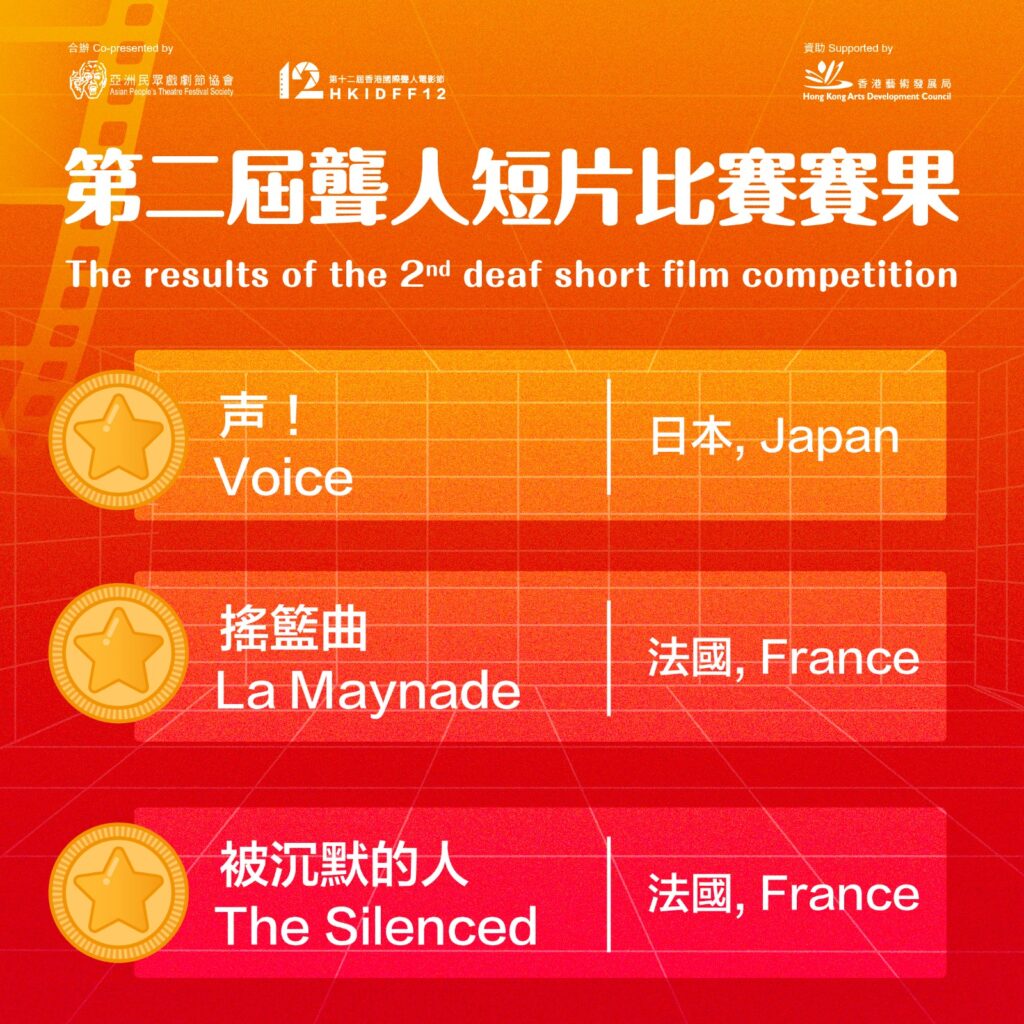 The 2nd HK Deaf Short Film Contest has successfully concluded, and we would like to congratulate all the winners of the 12th Hong Kong International Deaf Film Festival (HKIDFF12). We sincerely thank all the participants and the judges,Yeung Chiu Hoi and Judy Chu, for their involvement. Your participation has made this competition even more exciting. We are delighted to see friends from around the world taking part, including France, Japan, the United Kingdom, and other countries. The films showcased in this competition have demonstrated innovative thinking, fresh perspectives, and multidimensional approaches. Each work has its unique characteristics.